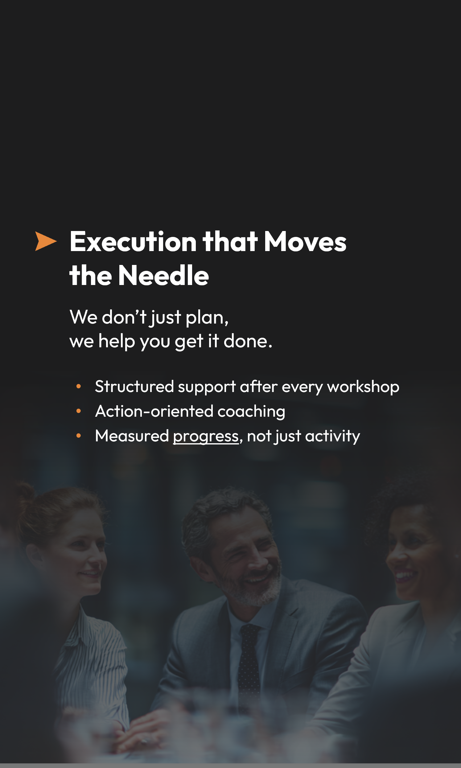 We help business owners increase value, reduce risk, and prepare for a successful transition — whether they plan to exit in the next few years or simply want to be ready.