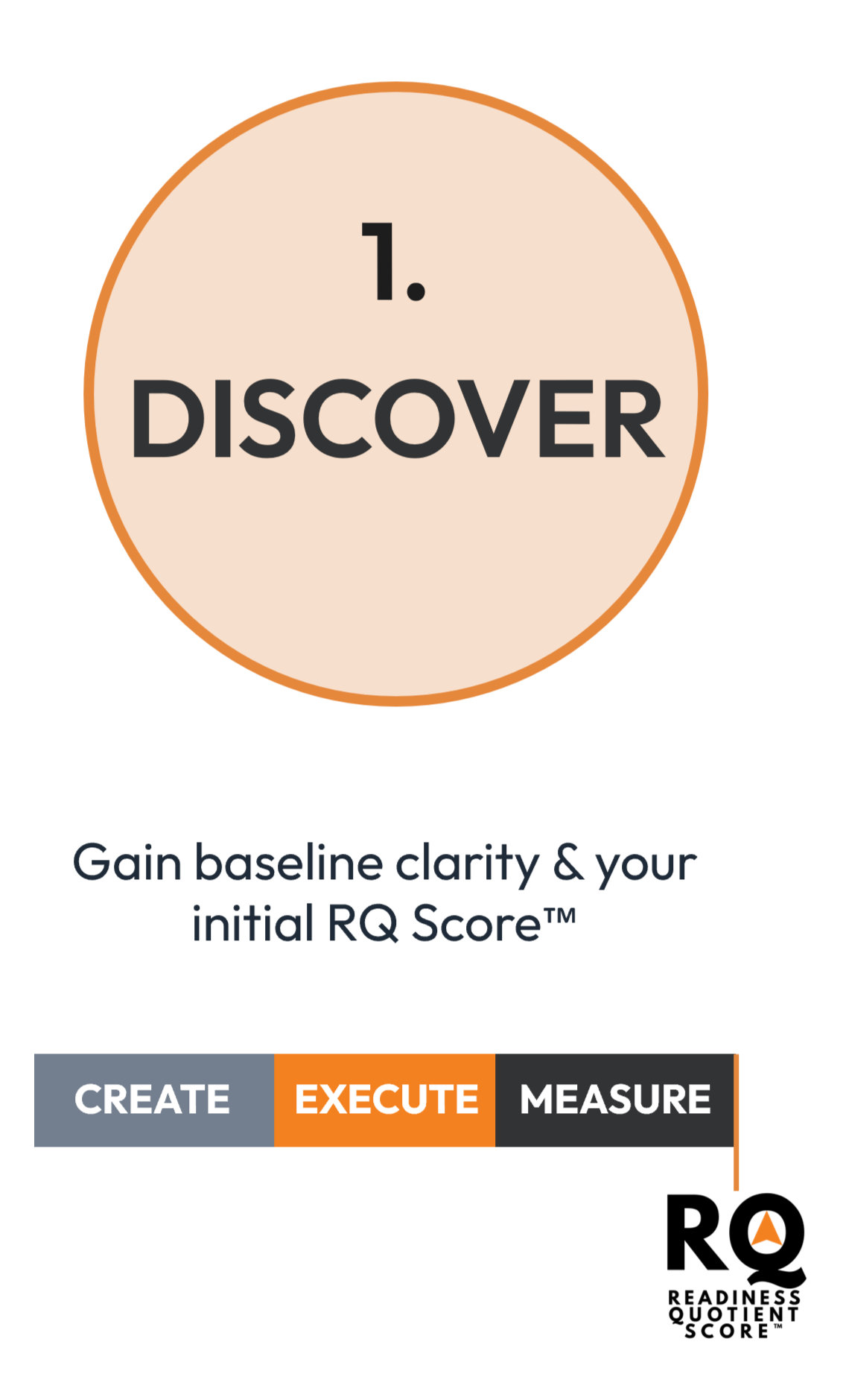 We conclude the Assess phase with an engaging, interactive, facilitated 1.5 day workshop in which we deliver your comprehensive report and RQ Score™, along with our estimated valuation of your business. We’ll also facilitate opportunity mapping sessions, resulting in clear next steps and priorities.
